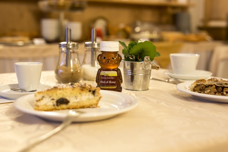 In unserem gemütlichen kleinen Saal im Erdgeschoss finden Sie ein reichhaltiges Buffet u.a. mit Speck,Käse, Milch, Jogurt, Honig und Obst aus der Umgebung, die für geschmacksvolle Urlaubstagesorgen.